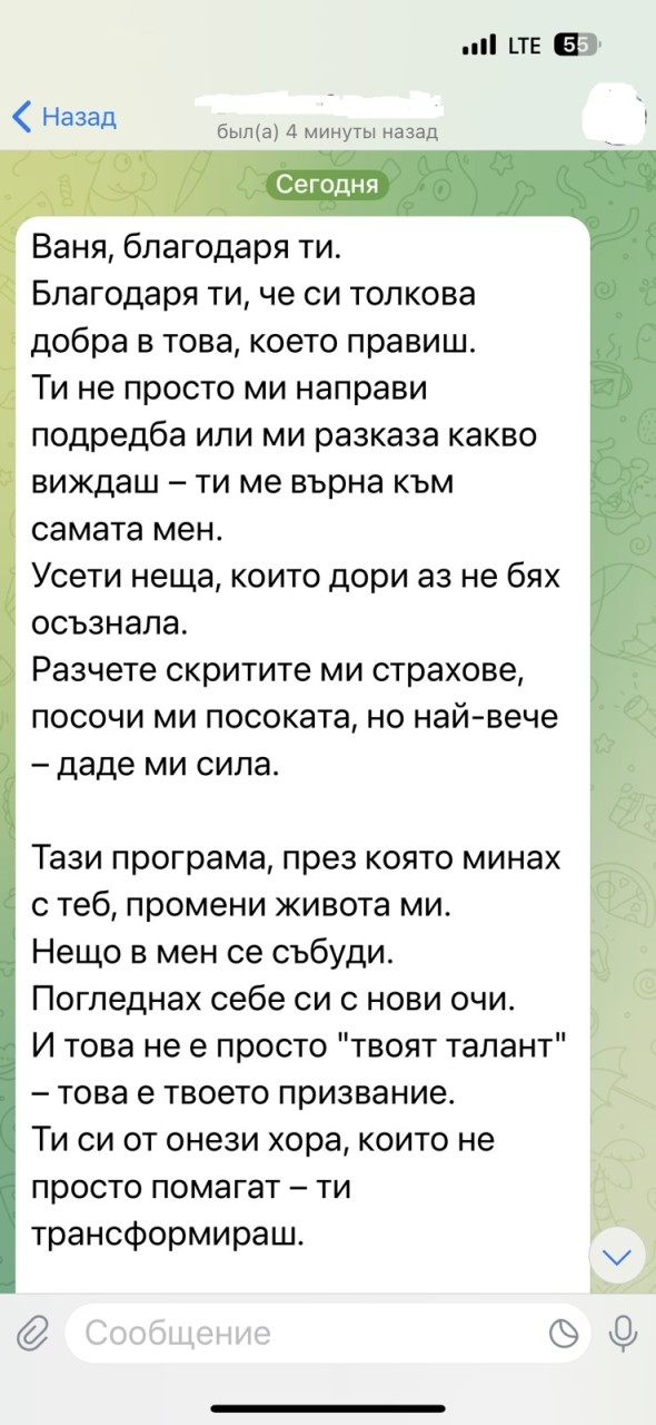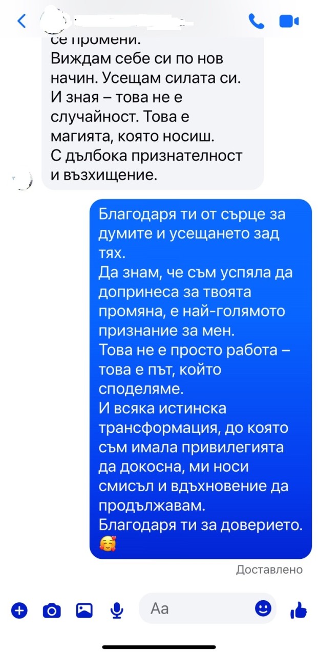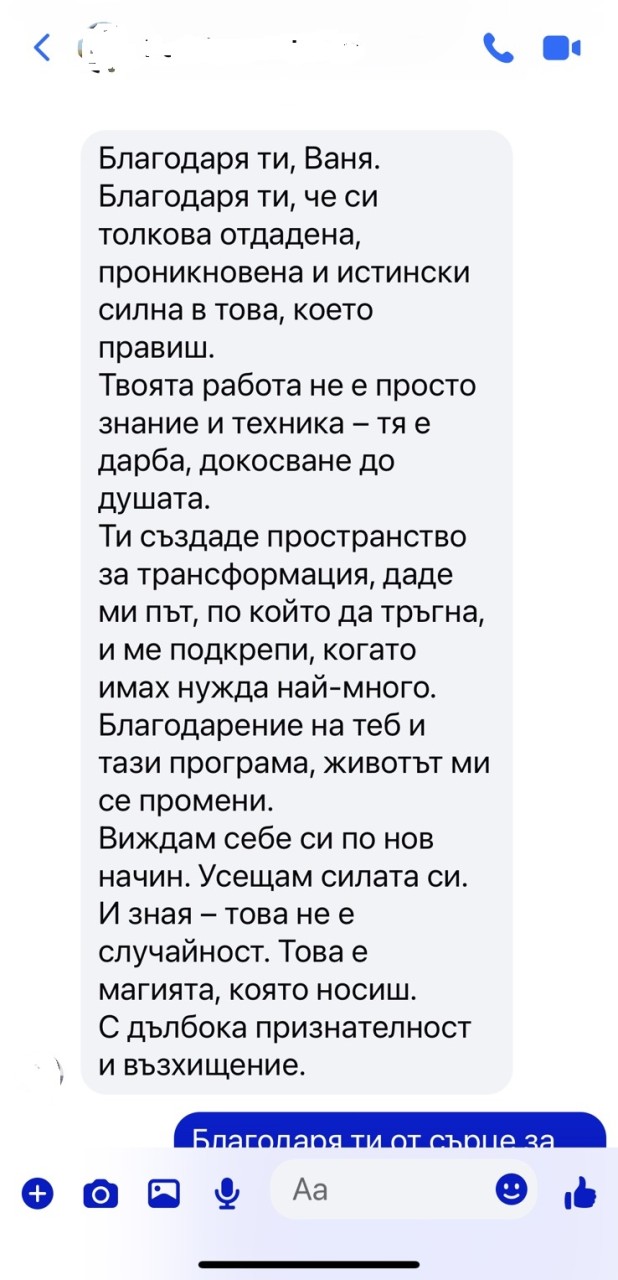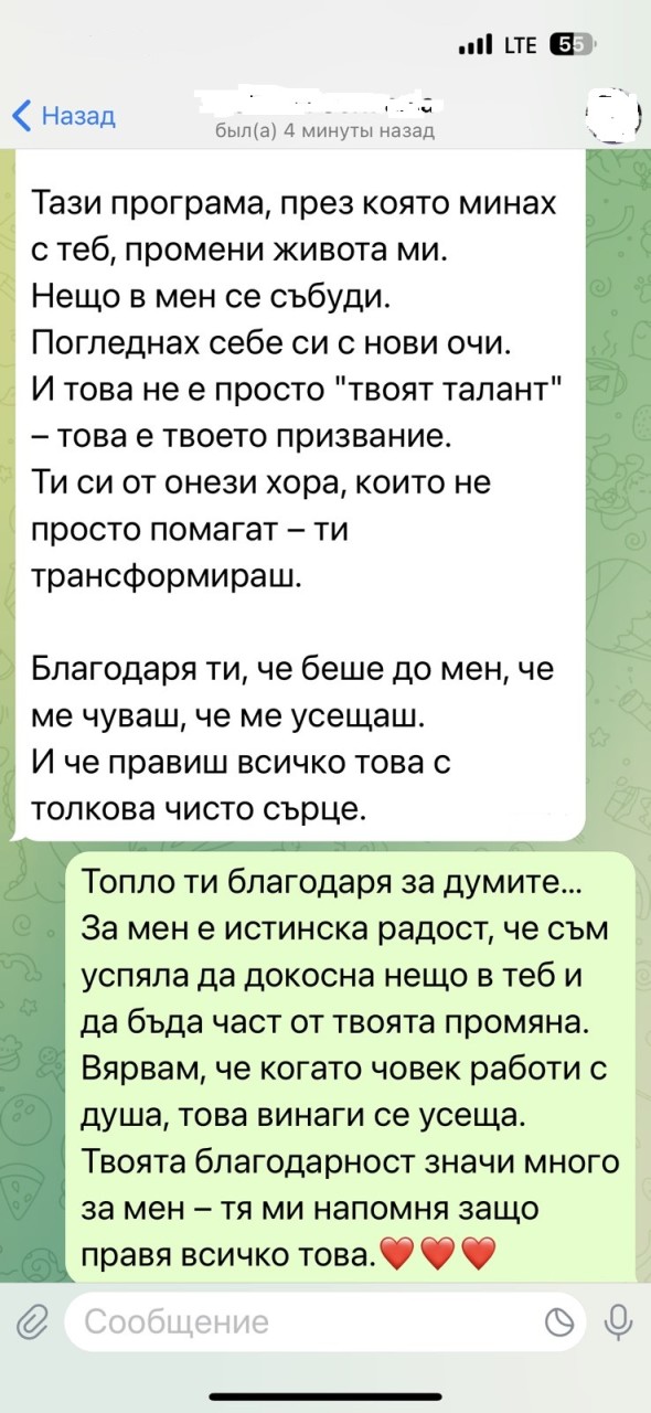 Толкова съм благодарна за всяко послание, за всяка жена, която премина през програмата „40 дни Любов“ – с доверие, с отворено сърце и с готовност за промяна.