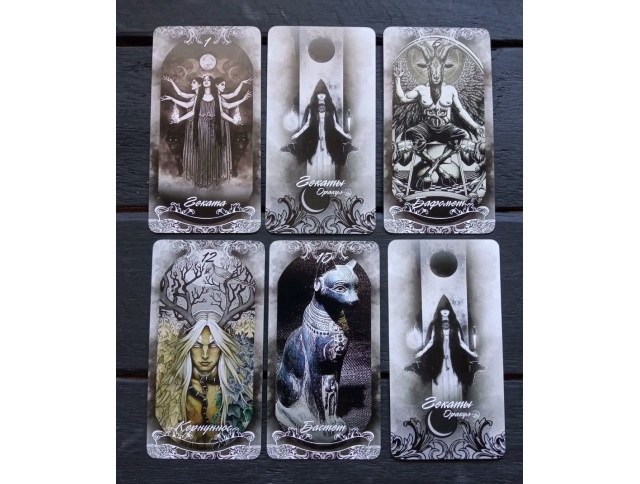 - Първите карти от колодата включват богове и "традиции": Хеката, Один, Лада, Кали, Анубис; Шаманизъм, Черна книга, Селска магия и др.