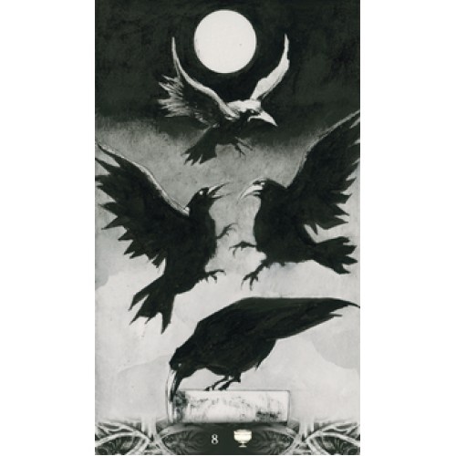 Тази вълнуваща колода представлява гарваните в цялата им готическа слава. Тя пробужда душата, но носи не само просветление, но и страх и безпокойство. В една поразителна черно-бяла цветова гама, тази колода е чудесно допълнение към вашата колекция.