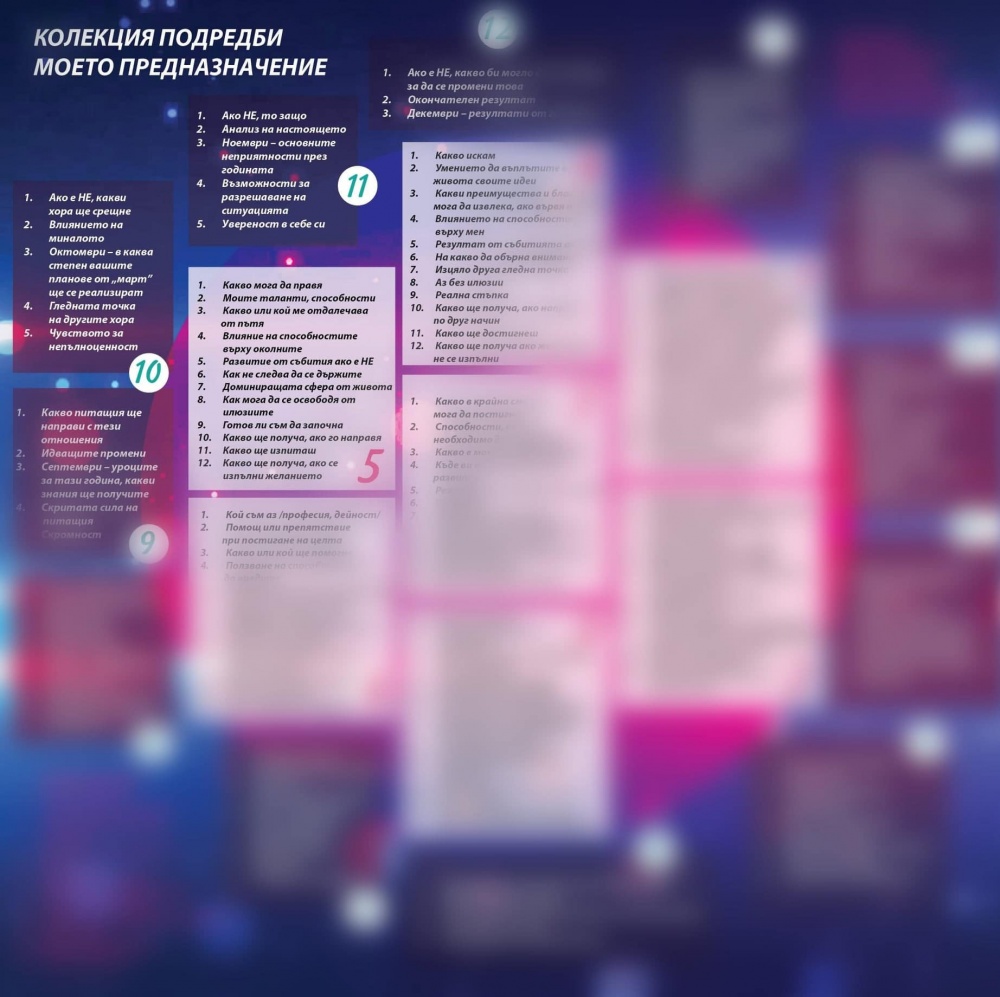 Тематичната колекция „Моето предназначение“ дава осъзнаване на индивидуалните характеристики, черти на характера, възможност да се научите как да изграждате взаимоотношения с другите, подчертавайки и актуализирайки общи цели и ценности, разширявайки нивото на взаимодействие, подобрявайки комуникативните умения.