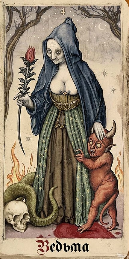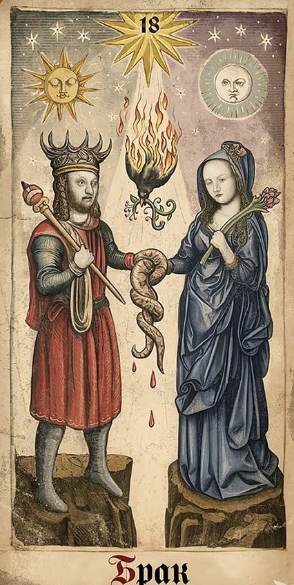 Колода с тъмна, алхимична вибрация, която не плаши, а пробужда. Тя води през сянката към същността, през хаоса към разбирането. За опитни практици, които не се страхуват да гледат в дълбокото.