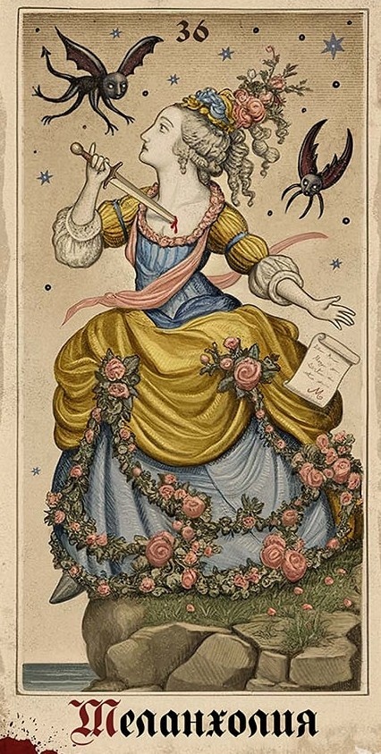 Всяка карта е жива – съчетава гравюра, текстура, колаж и фотография, като в себе си носи духа на две противоположни сили – светлината и мрака, съзиданието и разрушението. Колодата е тъмна, но изключително енергийна – идеална за работа с подсъзнанието, сянката, родовите пластове и невидимите връзки между съдбите.