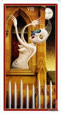 Таро на Безумната Луна има сюрреалистични, абсолютно уникални, понякога плашещи образи окъпани в лунна светлина. Картите се основават на обработени снимки на надгробни паметници, гробища и психиатрични болници, които авторът променя (някои „усукани“), превръщайки ги в характерни елементи: дрехи, шапки и обувки, или фон на картата.